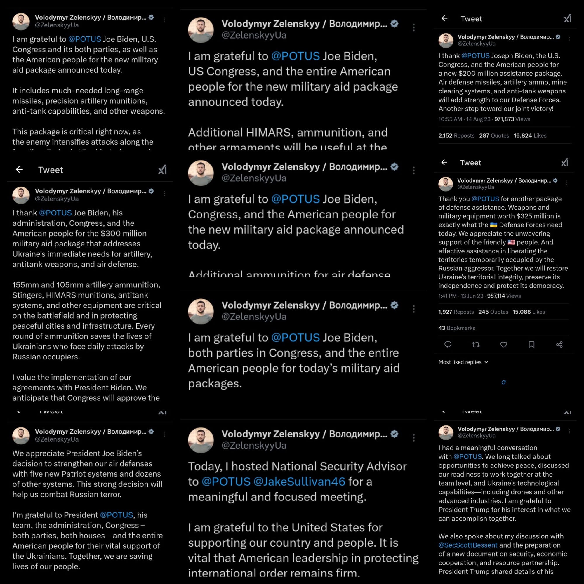 Let’s remember the number of times Zelensky actually expressed his gratitude.